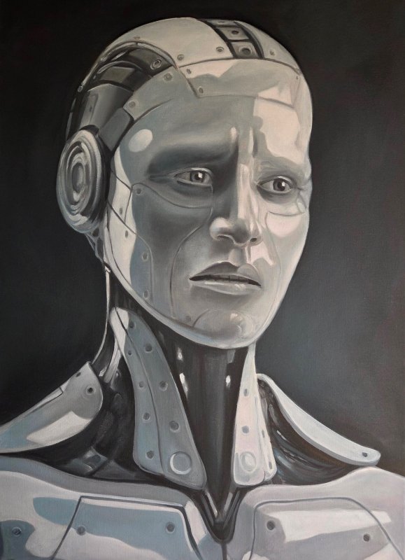 Recent paintings are the first resulting from an extended, fraught dialogue with Gemini AI. My conversations with the AI explored the fundamental impact of advanced artificial intelligence on human existence, creativity, and societal structure. My wo...